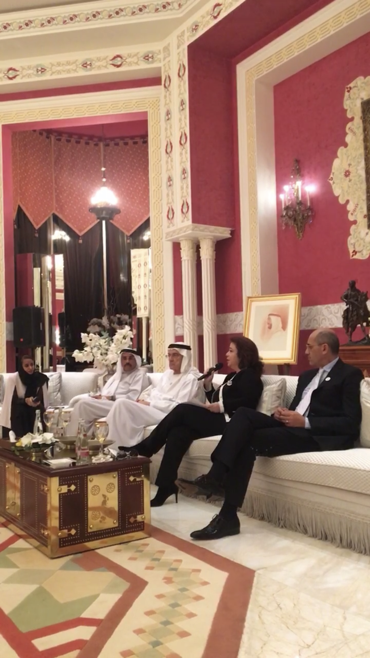 The ceremony was also attended by His Excellency Dr. Saeed Ahmed Ghobash, Supreme President of the Emirates University, His Excellency Mubarak Al Shamsi, Director General of the Abu Dhabi Center for Technical and Vocational Education and Training, Maitha Al Habsi, CEO of the Emirates Foundation, and Mohamed Salem Al Dhaheri, Advisor to the Head of the Education and Knowledge Department, and Dina Assaf, United Nations Coordinator, Dr. Sulaiman Al Hattlan, founder and CEO of Hatlan Media and a number of intellectuals, writers and thinkers.